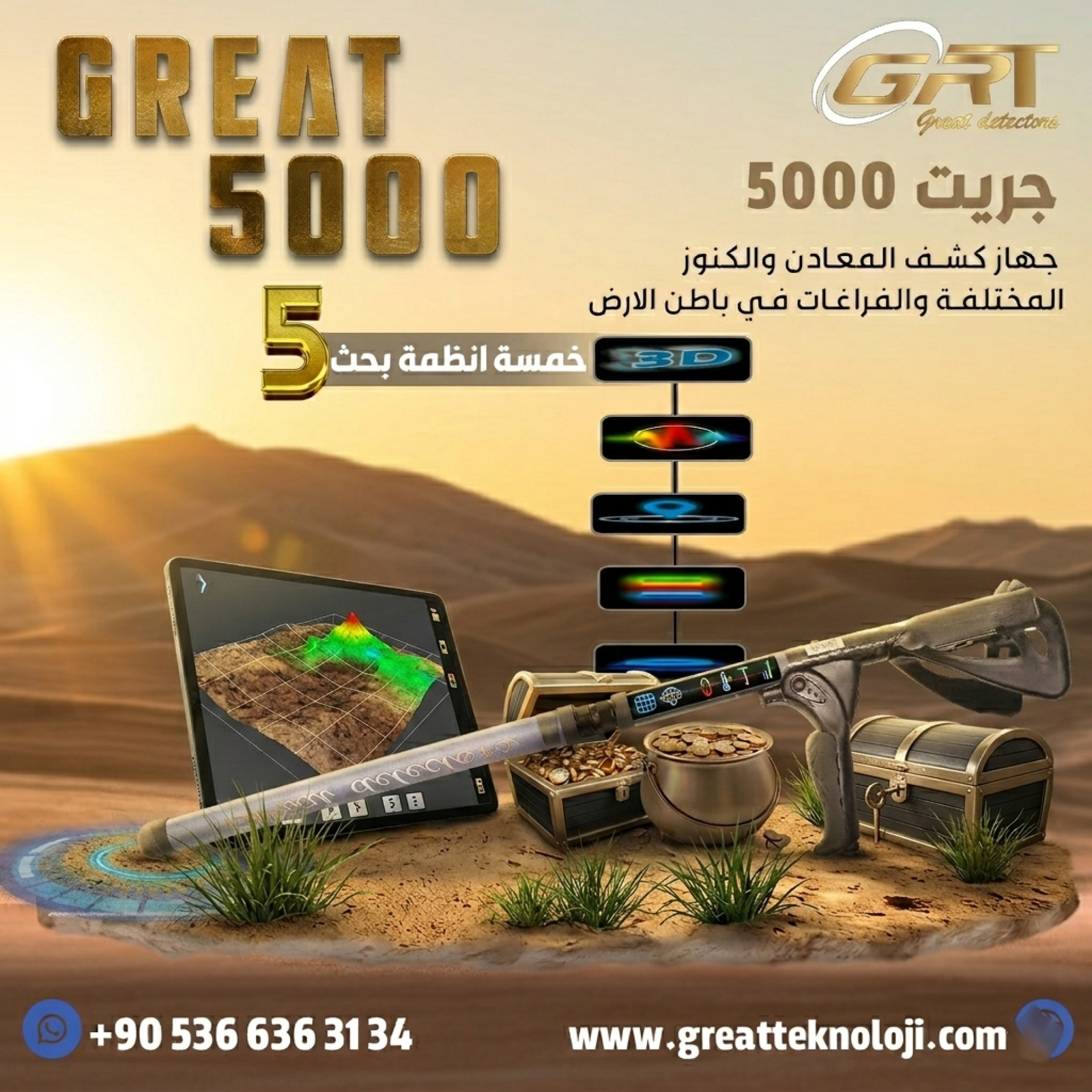 ???? **لمن يبحث عن التميز:** إذا كنت محترفًا جادًا في عالم كشف الذهب والكنوز، وتبحث عن جهاز يجمع بين القوة المطلقة والدقة المتناهية، فجريت 5000 هو خيارك الوحيد.