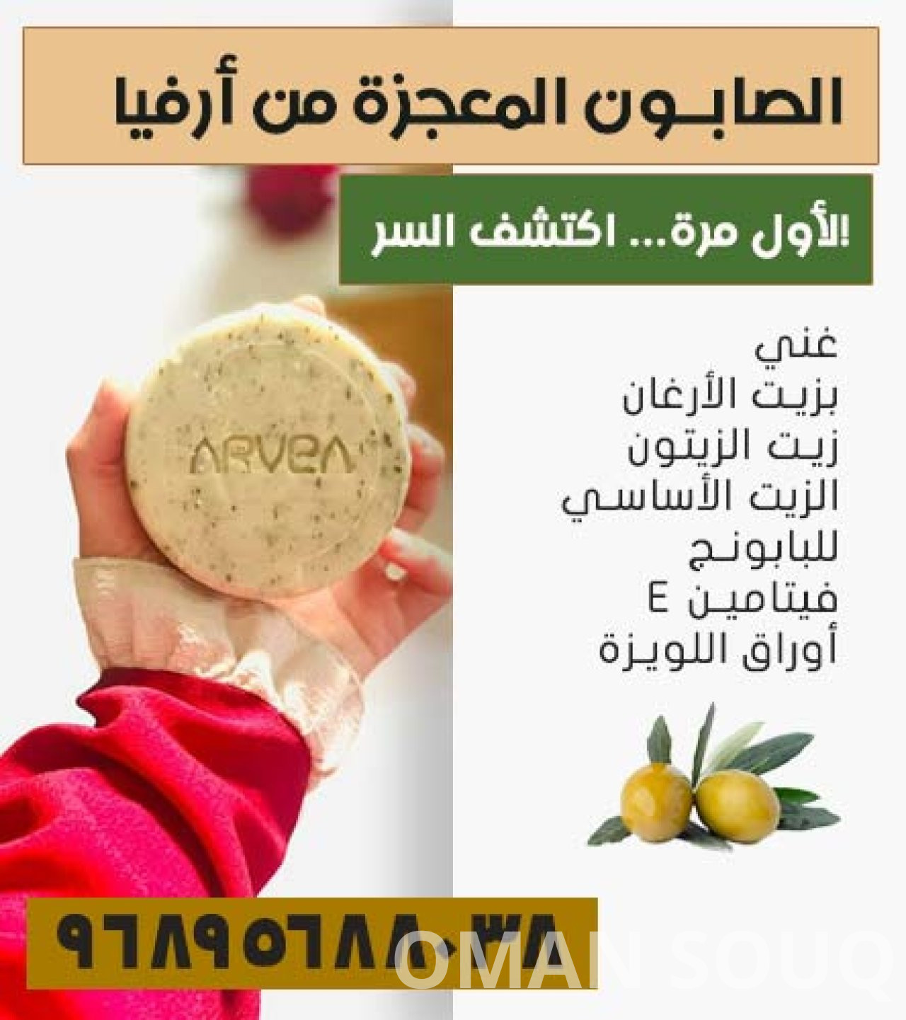 لا داعي للقلق بشأن إيجاد صابون المية المعجزة ARVEA؛ فـ سوق عمان (oman-souq.com) هو وجهتك الموثوقة للتسوق أونلاين في سلطنة عمان.