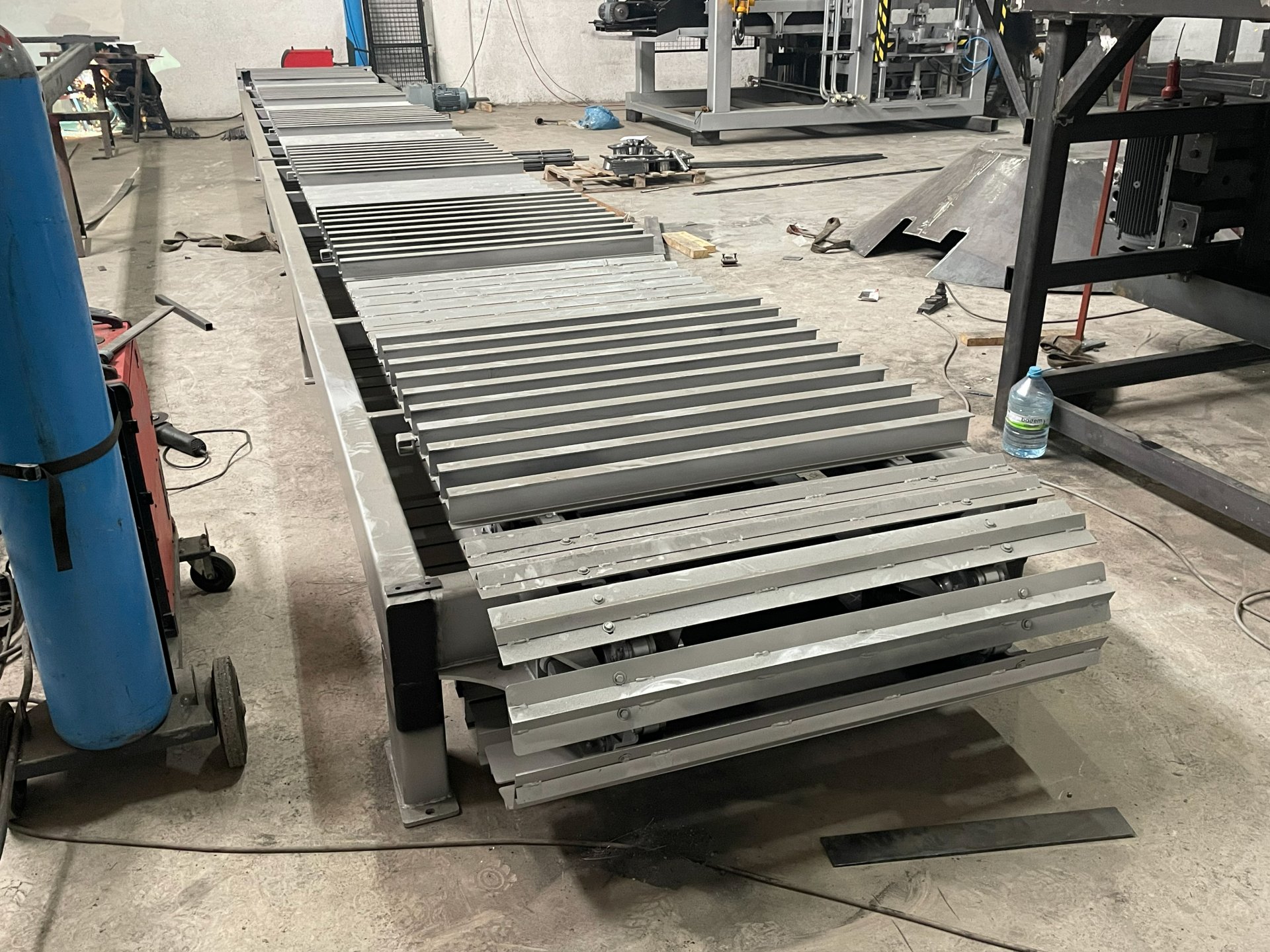 ·        نظام سيور ناقلة لنقل الباليت بين الروبوتات والماكينة – عدد 1